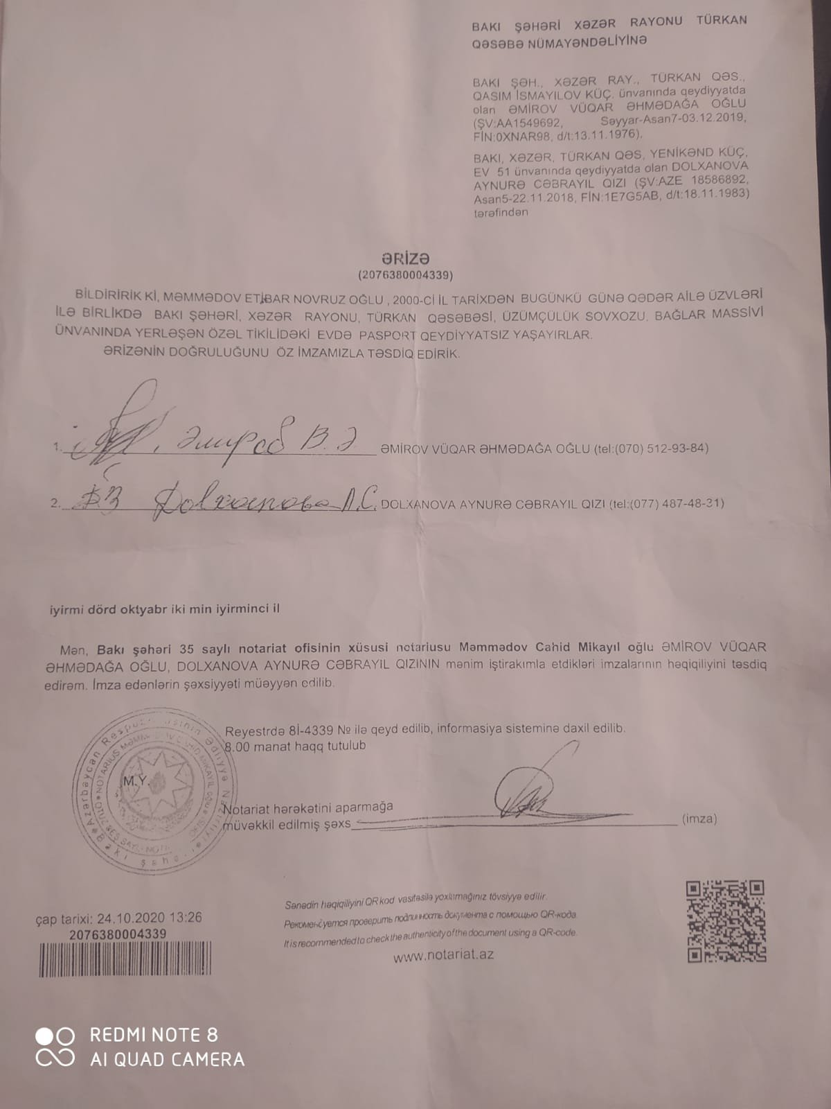 Yazıb sizə bildirmək istəyirəm ki, 2020-ci ilin avqustun 18-də Türkan qəsəbə sakini Şükür adlı şəxsdən 88 sot torpaq sahəsi almışam. Ona verəcəyi torpağın müqabilində 8 min manat ödəmişəm. 1.000 manat Türkan Bələdiyyəsinin keçmiş sədri Mehman adlı şəxsə vermişəm. Əvəzində mənə bələdiyyə sənədi verməli idi. Lakin bu günədək heç bir sənəd verilməyib. Mən pulumu geri istəyirəm. Əgər torpaq sahəsinin sənədi verəcəksə mən o torpağı istəyirəm.
