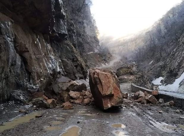 Bu gün Quba-Xınalıq avtomobil yolunun 53-cü km-də iri qaya parçası dağdan qoparaq yolun hərəkət hissəsinə düşüb.