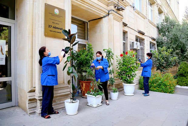 Hazırlıq şəraitində məktəblər dezinfeksiya olunub, ara məsafənin qorunması üçün xətlər çəkilib. Dəhlizlərə və sinif otaqlarına spirtlər qoyulub, siniflər də hərarət ölçən cihazla təmin edilib.