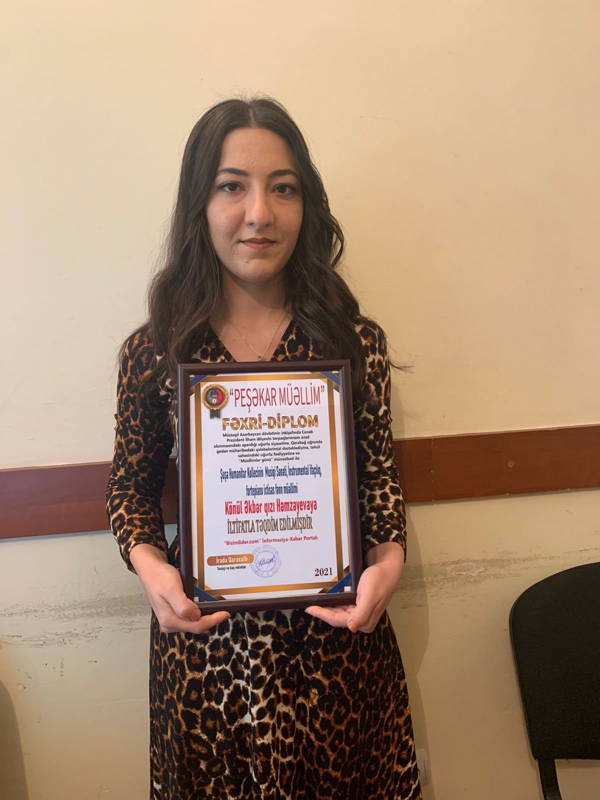 «Mənə bir hərf öyrədənin köləsi olaram». Bu sözlər Islam dünyasının parlaq simalarından olan Həzrəti Əliyə məxsusdur. Din, əqidə, məslək uğrunda uca şəhidlik zirvəsinə yüksələn Həzrəti Əlinin öyrədənin - müəllimin əməyini belə yüksək dəyərləndirməsinin səbəbini anlamaq üçün ilk növbədə müəllimlik peşəsinin mahiyyətinə nəzər salmaq gərəkdir. Bu gün 5 oktyabr "Müəllimlər" günüdür. Bu münasibətlə Şuşa Humanitar Kollecinin Musiqi Sənəti, İnstrumental ifaçılıq, fortepiano ixtisas fənn müəllimi Həmzəyeva Könül Əkbər qızı "dahilider.az" İnformasiya-Xəbər Portalı redaksiya heyətinin fəxri diplomuna layiq görülüb. Bu münasibətlə onu təbrik edir, gələcək işlərində uğur və müvəffəqiyyətlər arzulayırıq.