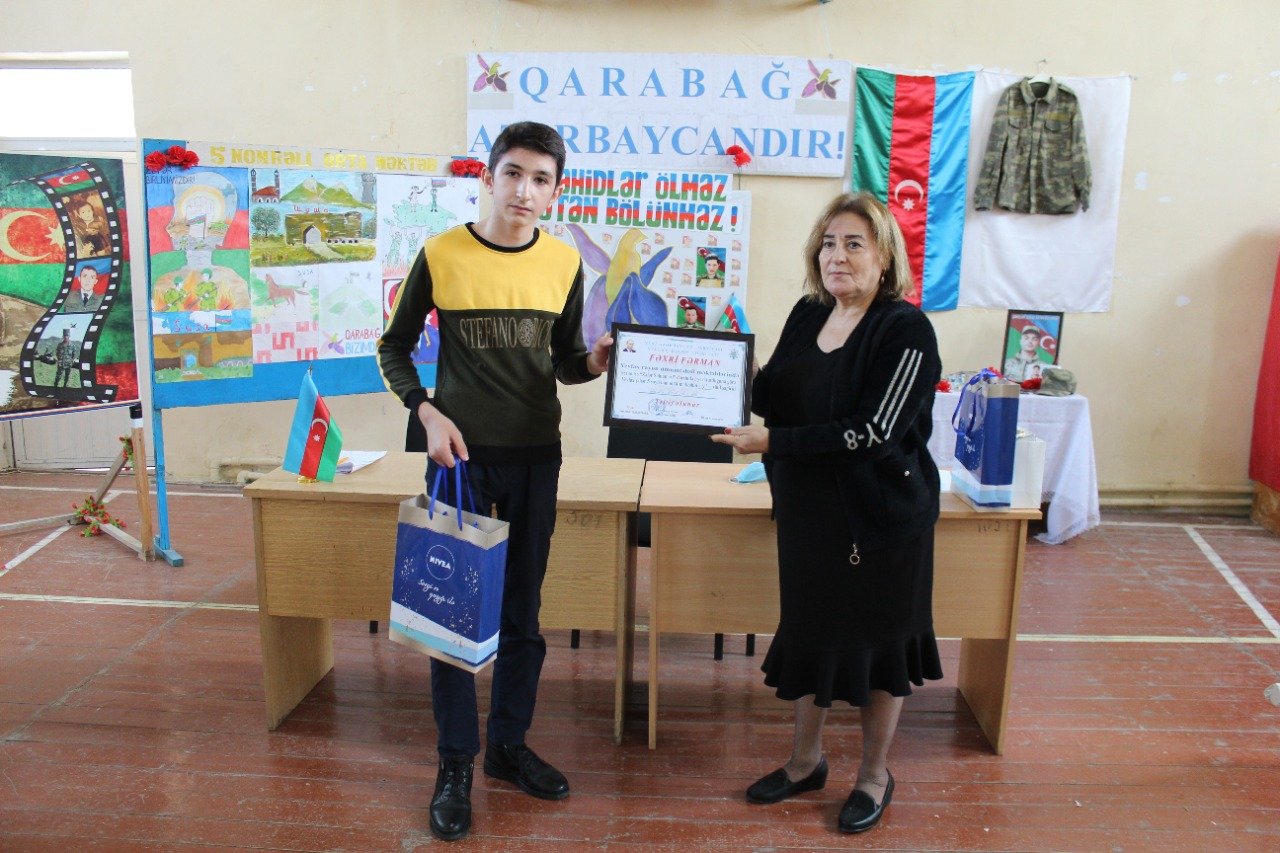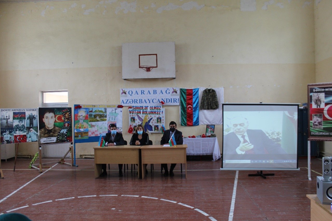 YAP Yevlax rayon təşkilatı tərəfindən ümumtəhsil məktəblərində keçirilən “Zəfər Salnaməsi” dərsi adlı layihəsi çərçivəsində növbəti görüş şəhər 5№-li tam orta məktəbdə (7-11)-ci sinif şagirdlərinin iştirakı ilə təşkil edildi. Tədbirdə ilk olaraq müasir Azərbaycanın qurucusu Ulu öndər Heydər Əliyevin və şəhidlərin əziz xatirəsi 1 dəqiqəlik sükutla yad olunub. Layihəni giriş sözü ilə açan YAP Yevlax rayon təşkilatının fəalı Fərid Vaqifli Vətən müharibəsində Müzəffər Ordumuzun qalib Ali Baş Komandanı cənab İlham Əliyevin ilk gündən qəti qələbə əzmindən, mahir siyasətçi və əzmkar Sərkərdəlik məharətindən söhbət açaraq, dövlətimizin və Ordumuzun bu tarixi Qələbəsi nəticəsində yeni tariximizin,milli varlığımızın və dövlətçilik ənənələrimizin daha möhkəm və sarsılmaz təməllər üzərində yenidən qurulmasını tədbir iştirakçılarının diqqətinə çatdırdı. Sonra tədbirdə ənənəvi olaraq YAP Yevlax rayon təşkilatı tərəfindən hazırlanmış Vətən müharibəsinə həsr olunan videoçarx nümayiş etdirilmişdir. Layihənin 5№-li məktəb üzrə məruzəçisi YAP Yevlax rayon təşkilatının fəalı,Azərbaycan Dövlət Pedaqoji Universitetinin Tarix-Coğrafiya fakultəsinin 3-cü kurs tələbəsi Anar Qarayev çıxışında azərbaycançılıq məfkurəsinin parlaq mücəssəməsi olan Heydər Əliyev faktorunun öz müdrik siyasəti, dönməz əqidəsi sayəsində milli dövlətçilik ideyasının gerçəkləşdirilməsindən və milli-mənəvi dəyərlərimizin qorunub saxlanılmasından geniş bəhs etdi. Vətən müharibəsində Ölkə Prezidenti cənab İlham Əliyevin məqsədyönlü və uzaqgörən siyasəti ilə Ermənistanı ağır məğlubiyyətə uğradan Azərbaycan Ordusunun qəhrəmanlığından danışan YAP-ın fəalı məktəblilərə tarixi həqiqətləri çatdırmaqla onlara gələcək fəaliyyətində uğurlar arzu etdi. Sonda “Zəfər Salnaməsi” dərsinin iştirakçları ilə intellektual oyun keçirilmiş, 1-ci yerə layiq görülən 10-cu sinif şagirdi Rauf Əhmədov YAP Yevlax rayon təşkilatının fəxri fərmanı və hədiyyəsi, 2-ci yerə layiq görülmüş 9-cu sinif şagirdi Fərid Nəbiyev və 3-cü yerə layiq görülmüş 9-cu sinif şagirdi Nihad Rzayev YAP Yevlax rayon təşkilatının hədiyyələri ilə təltif edildi.