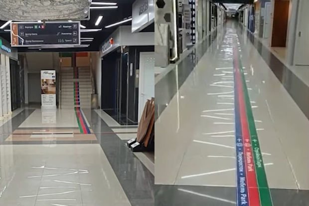 Rusiyanın paytaxtı Moskvadakı ticarət mərkəzlərinin birində Azərbaycan bayrağı ayaqlar altına sərilib.