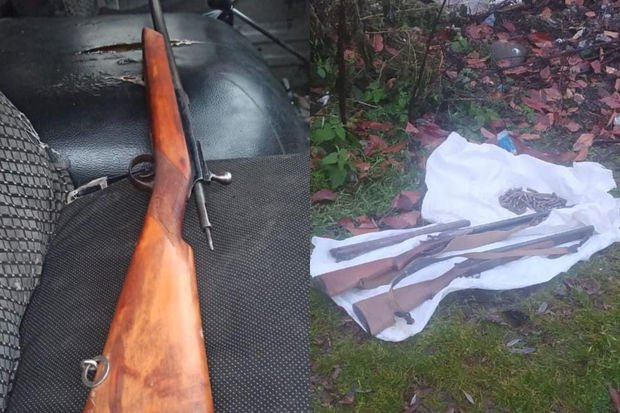 Dərhal hadisə yerinə gedən polis əməkdaşları Quba-Qusar yolunun sol tərəfində yerləşən “Gülüstan” gölünün kənarından ağ polietilen kisəyə bükülmüş 2 ədəd 16 kalibrli qoşalüləli tüfəng, 1 ədəd ov tüfənginə məxsus lülə və 81 ədəd avtomat patronu aşkar edərək götürüblər.