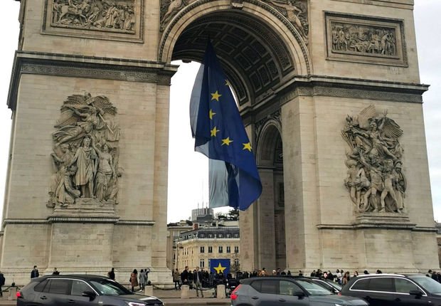 Parisdə sağçı siyasətçilərin tənqidindən sonra Zəfər tağının altına asılmış Avropa İttigaqının bayrağı yığışdırılıb.