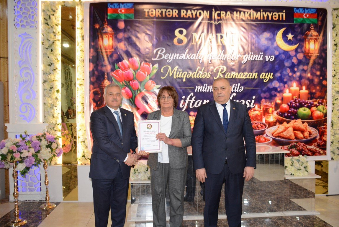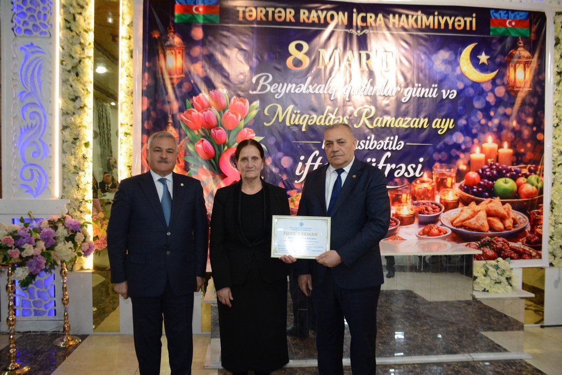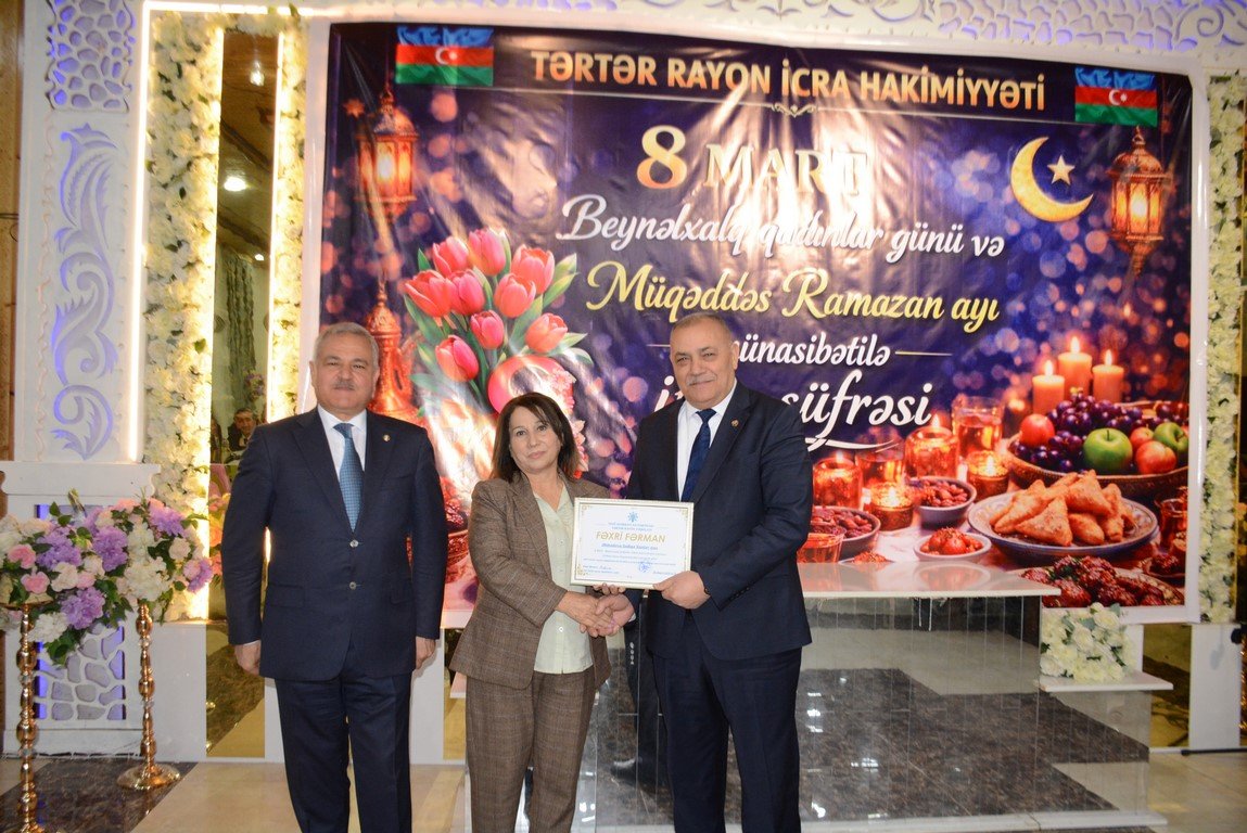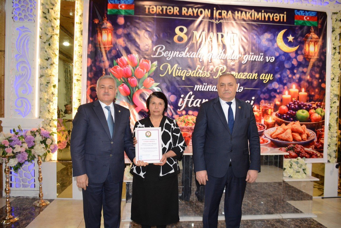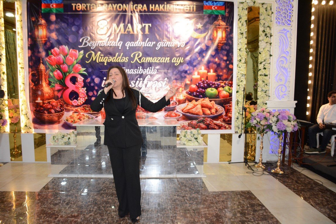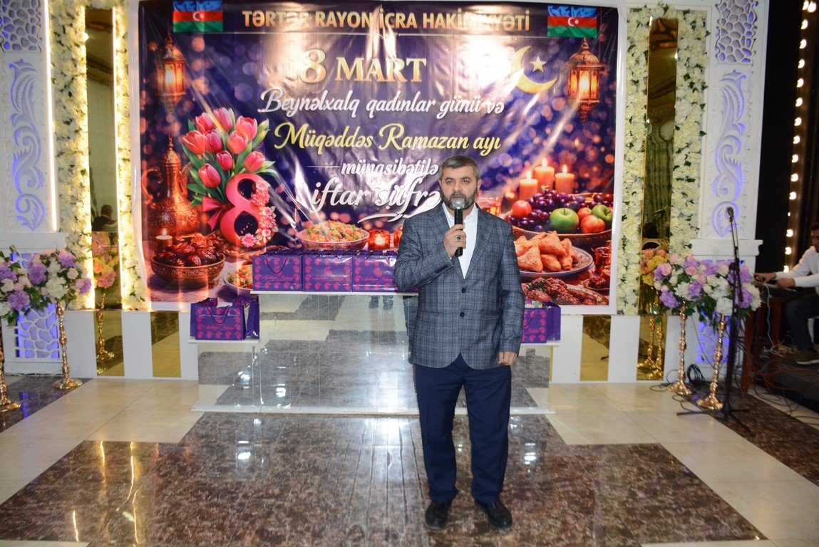 Tərtər Rayon İcra Hakimiyyətinin və YAP Tərtər rayon təşkilatının birgə təşkilatçılığı ilə “Tərtər İstirahət Mərkəzi”ndə 8 Mart – Beynəlxalq Qadınlar Günü münasibətilə tədbir keçirilib. Bayramın müqəddəs Ramazan ayına təsadüf etməsi münasibətilə tədbir iftar süfrəsi ətrafında təşkil olunub.