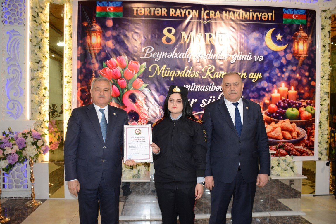 Tədbirin yekununda Tərtər Rayon İcra Hakimiyyəti və YAP rayon təşkilatı tərəfindən şəhid anaları və şəhid həyat yoldaşlarına hədiyyələr, rayonun ictimai-siyasi həyatında fərqlənən qadınlara isə Fəxri Fərmanlar təqdim edilib.