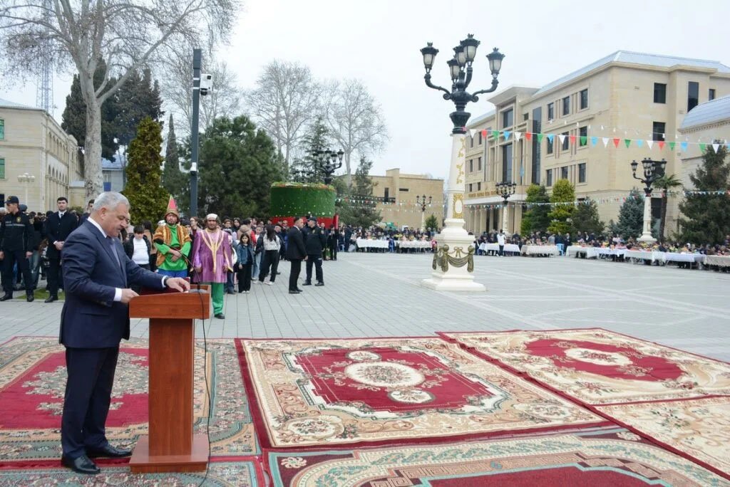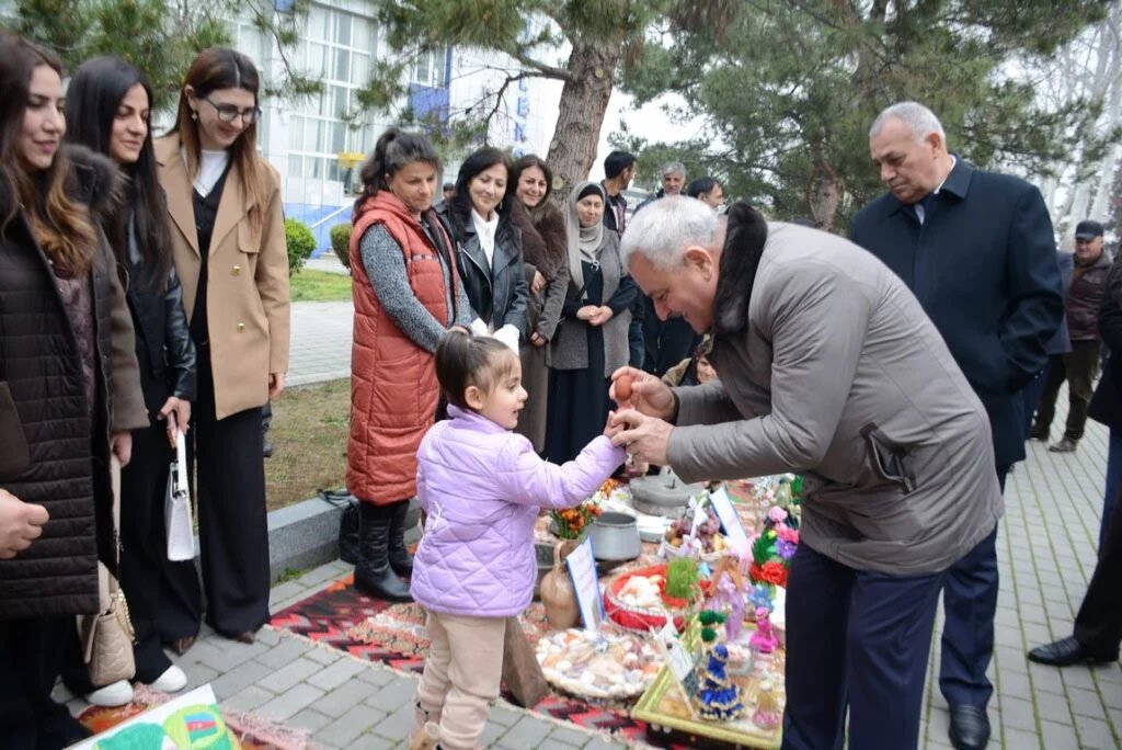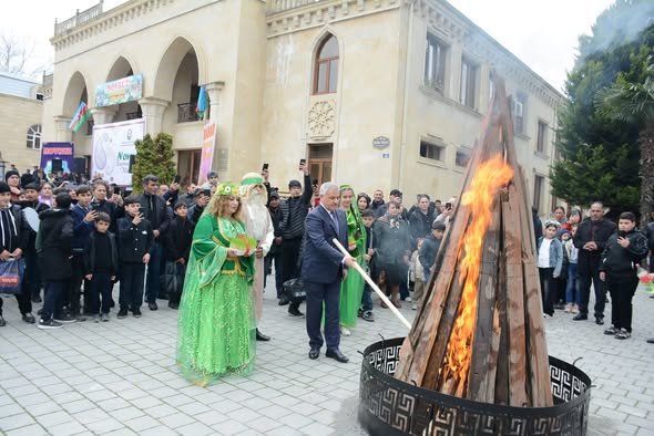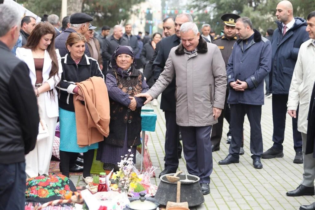 Meydanda qədimi xalça-palazlar sərilib, Novruz süfrəsi qurulub. İştirakçılar Tarix-diyarşünaslıq muzeyinin sərgisinə, məktəblilərin və Uşaq Gənclər İnkişaf Mərkəzinin bahara həsr olunmuş rəsm və əl işlərinə baxıblar. Rayon idmançılarının güləş, boks, kikboksing üzrə çıxışları, kəndirbazların ifaları, yumurta və xoruz döyüşləri maraqla izlənilib. Meydanda Novruza xas olan bütün təamlar — yuxa, kətə, qovurğa, aş və müxtəlif şirniyyatlar süfrələrə düzülüb. Müdrik el ağsaqqalı Dədə Qorqud və Bahar qızı iştirakçıları salamlayaraq onlara xeyir-dua verib, Keçəl və Kosanın çıxışları tədbirə xüsusi rəng qatıb.
