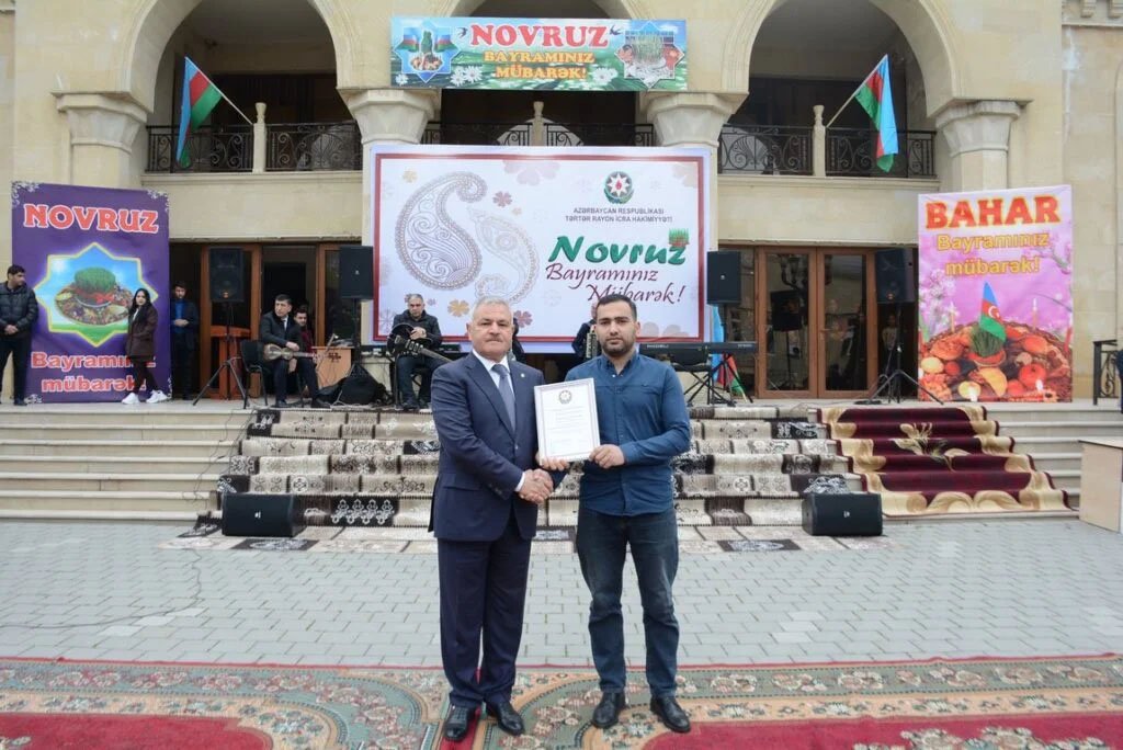 Sonda rayonun ictimai-siyasi həyatında fəal iştirak edən bir qrup tərtərliyə rayon icra hakimiyyətinin və YAP rayon təşkilatının fəxri fərmanları təqdim olunub.